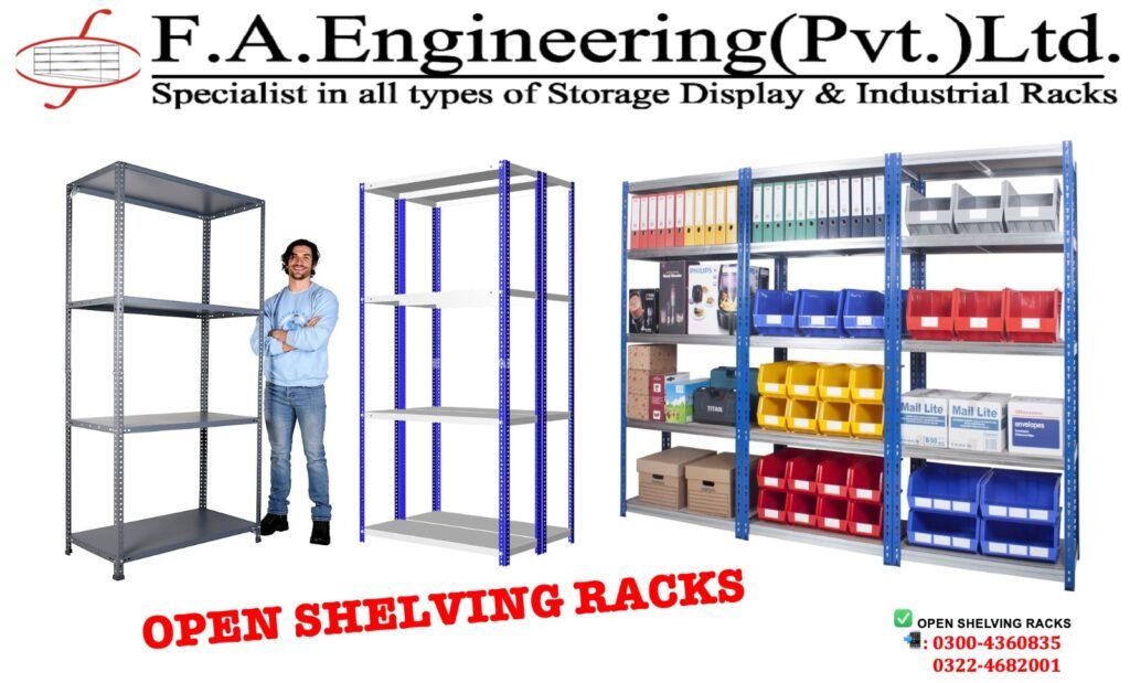 If you are looking for durable, accessible, and versatile open shelf racks, FA Engineering Pvt Ltd is your trusted partner in Pakistan. Our racks provide organized storage, easy access to materials, and long-lasting performance for industrial, commercial, and retail applications. Contact us today to explore our complete range of open shelf racks and optimize your storage and display solutions with professional-grade products.