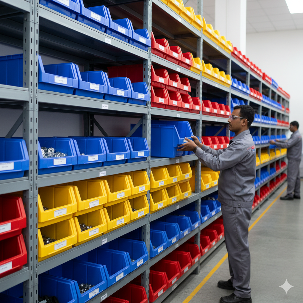 FA Engineering’s Storage Bins Racks are widely used across various industries due to their efficiency and versatility: