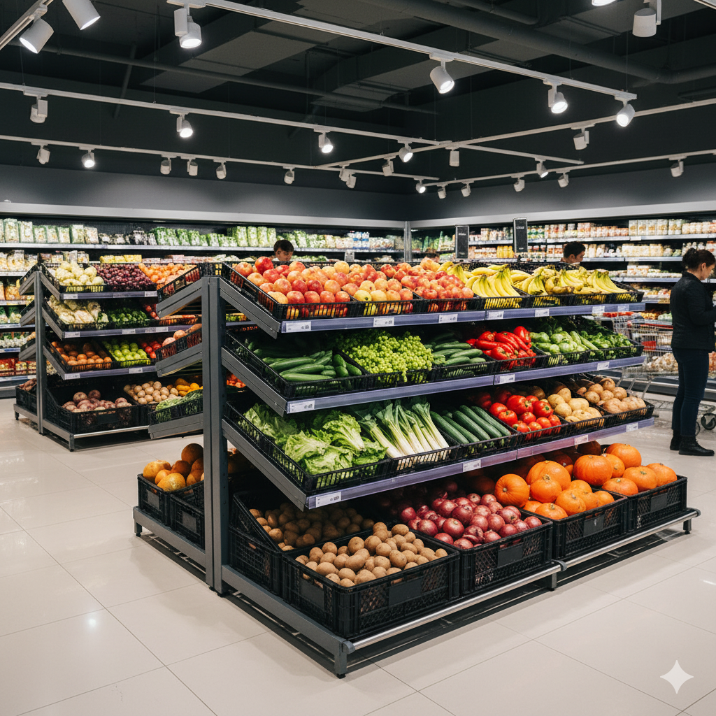 Perfect for supermarkets, grocery stores, fruit markets, vegetable marts, and departmental stores aiming to create a neat and fresh produce section that attracts customers and improves sales.