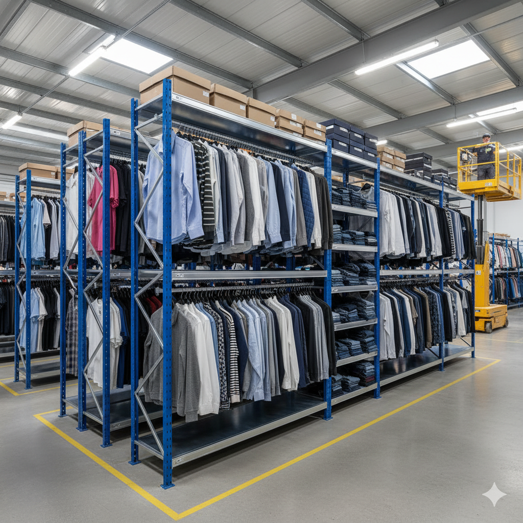 Perfect for garment factories, textile showrooms, retail outlets, and distribution centers requiring efficient, organized, and durable apparel storage systems.