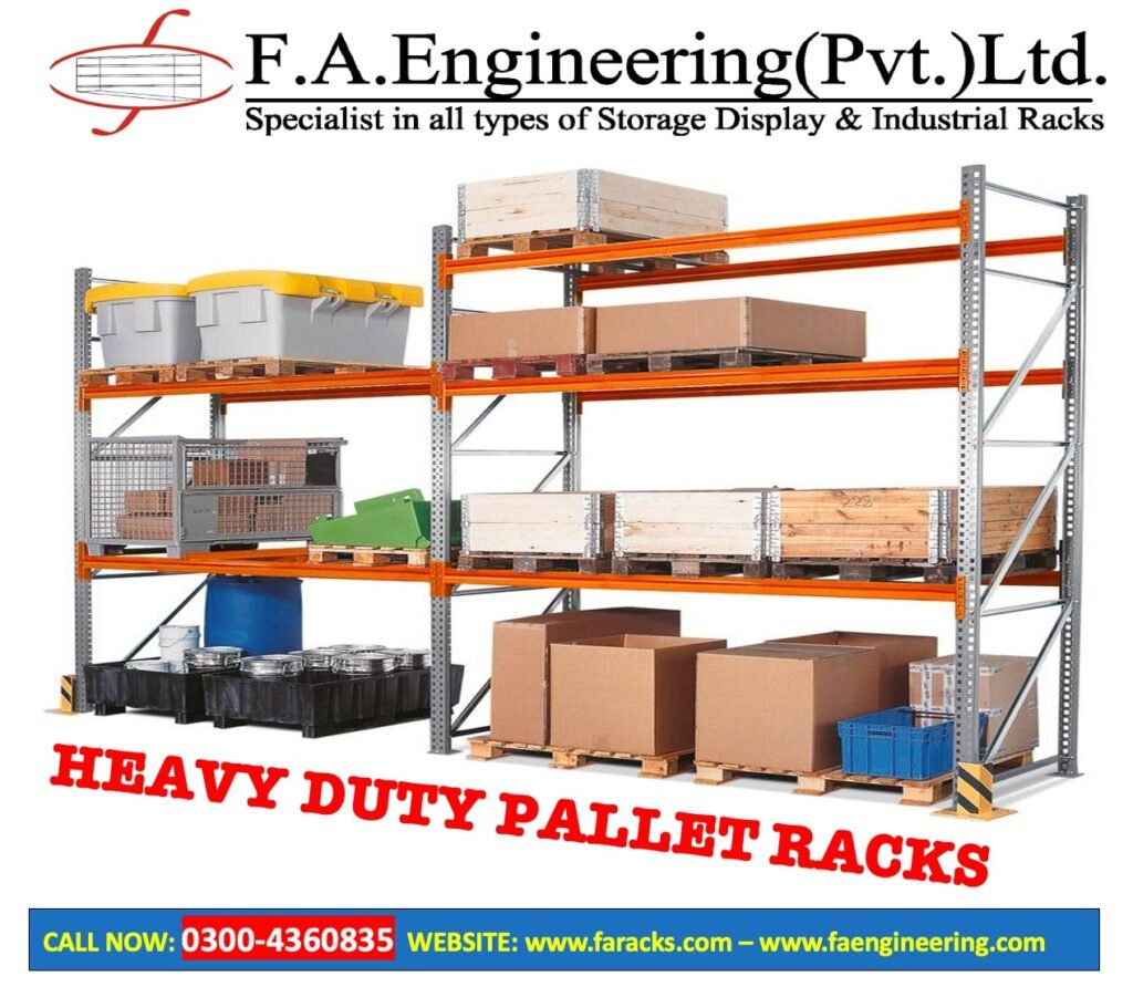 FA Engineering Pvt Ltd, based in Lahore, Pakistan, is a leading manufacturer and supplier of high-quality heavy duty racks designed for warehouses, factories, logistics centers, and industrial facilities. Our racks are engineered to provide maximum strength, durability, and efficiency, making them the ideal solution for businesses that require reliable storage for heavy loads and bulk materials.