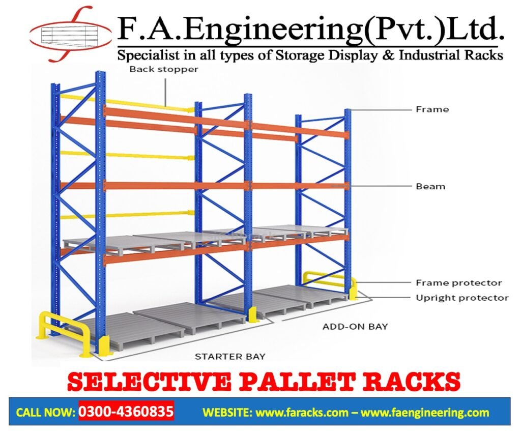 If you are looking for strong, efficient, and durable pallet racking, FA Engineering Pvt Ltd is your ideal partner in Pakistan. Our racks help optimize storage space, improve warehouse operations, and provide long-lasting performance for industrial and commercial applications. Contact us today to explore our full range of pallet racking solutions and enhance your storage and material-handling systems with professional-grade products.