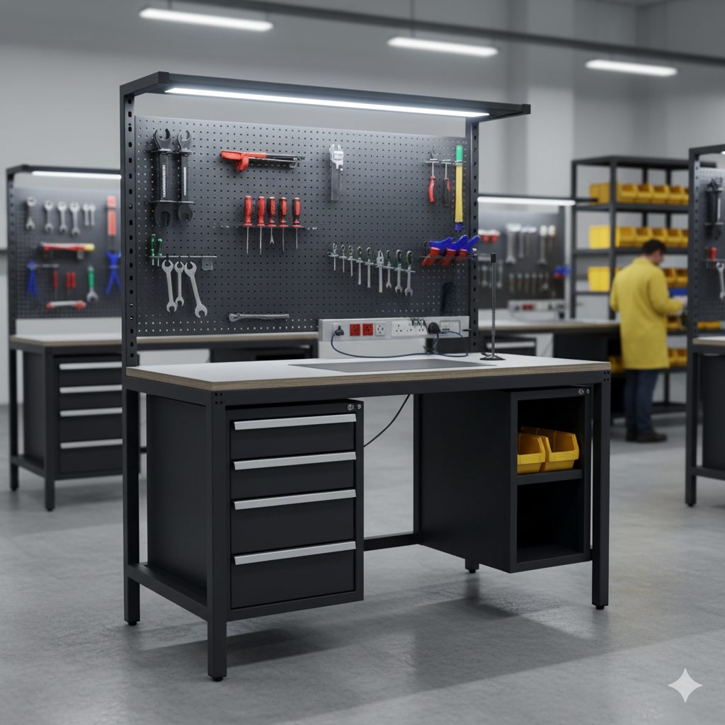 Our Workstations, a premium subcategory under Work Benches, are meticulously designed for technical precision, comfort, and efficiency. These benches provide a structured workspace ideal for assembly lines, repair shops, laboratories, and production areas — ensuring workers have everything they need within reach.